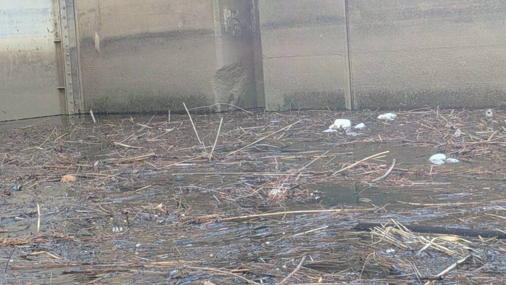 この時期は剪定された枝や松葉と一緒にごみが溜まります。