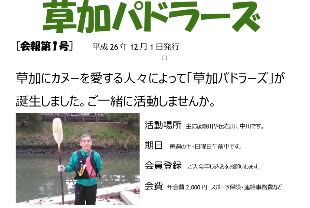 会報第1号は2014年12月1日発行の佐藤初代会長からの活動メンバー募集についてでした。
