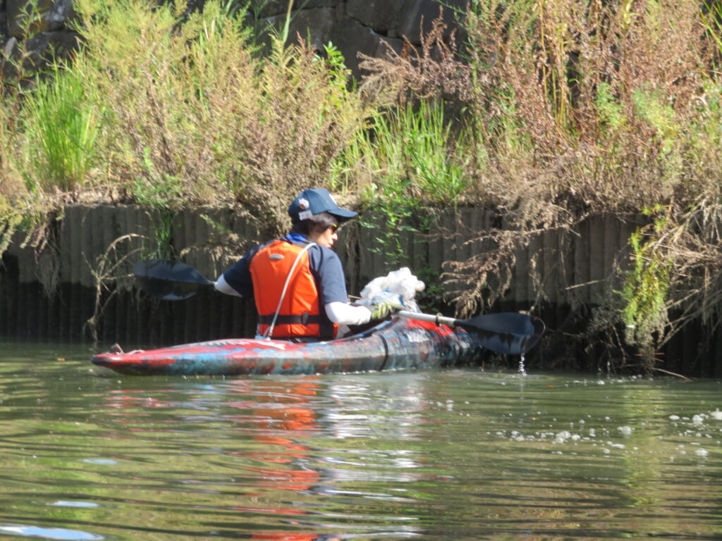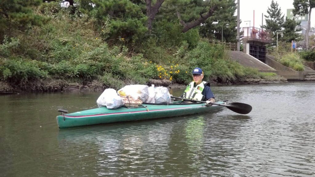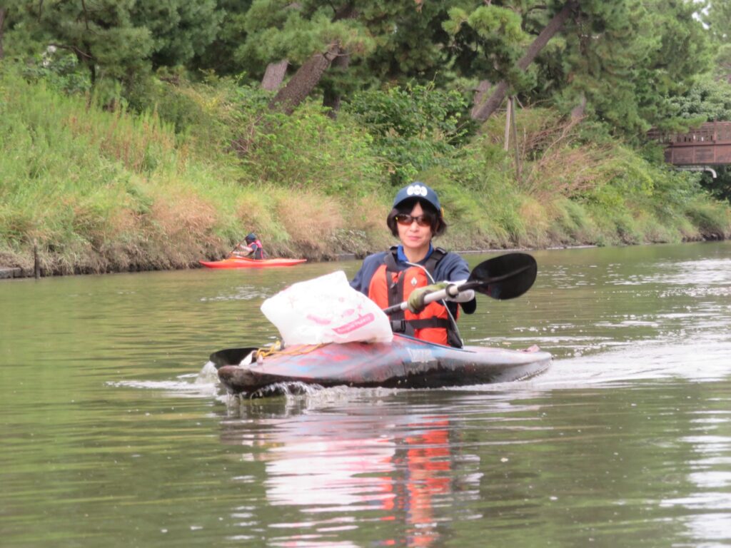 浅井さんは新しい艇で楽しそう、細かなゴミも丁寧に拾ってくれました。