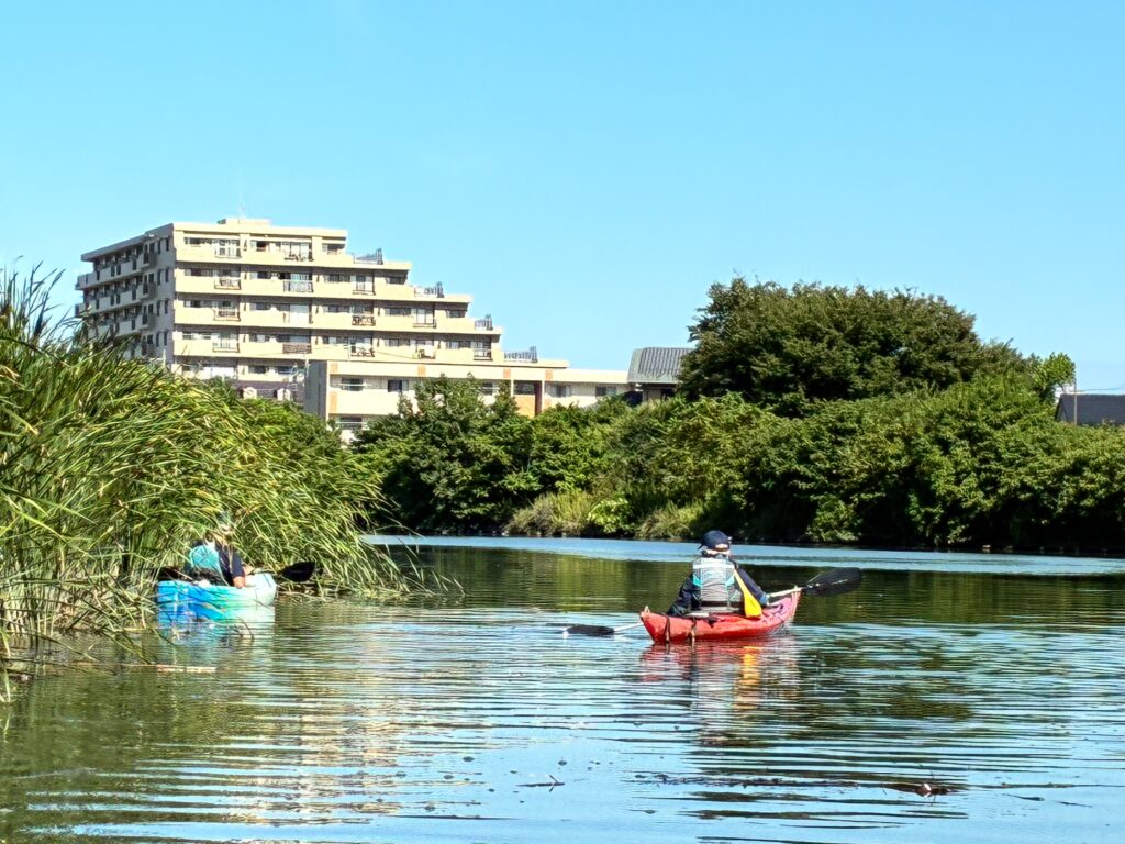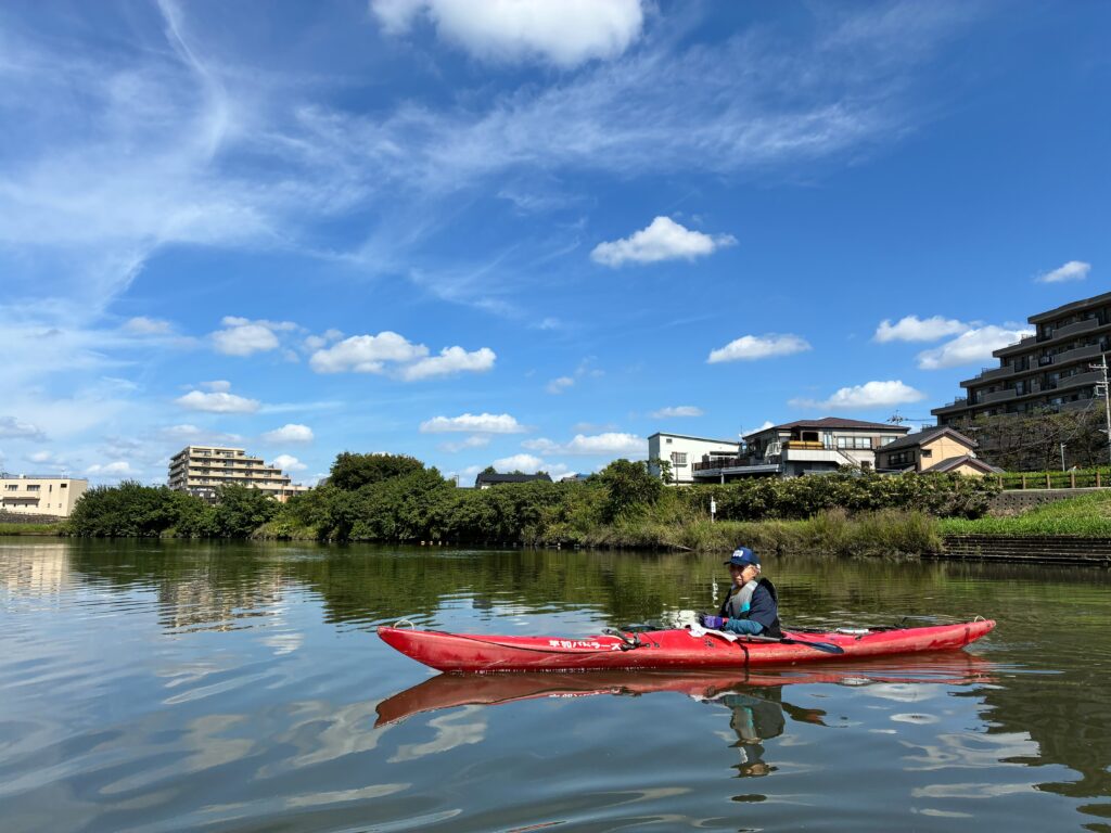 関根さんは 赤いシーカヤックでスピードを楽しんでました、