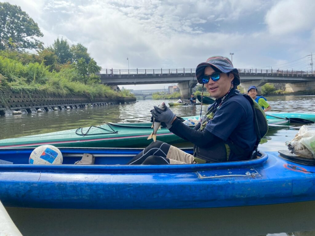 なんと飯塚さんのタンデム艇にボラが飛び込むハプニング。