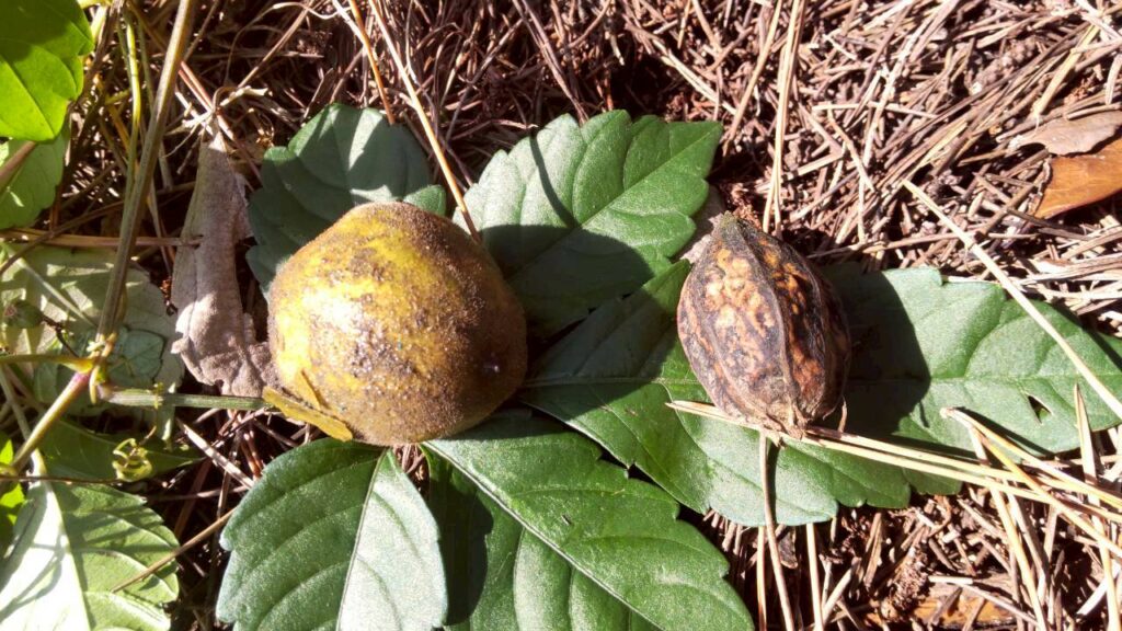 水面にはホテイアオイと胡桃が結構沢山流されてきていました。