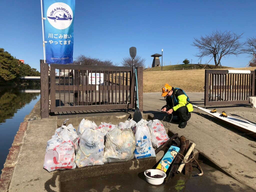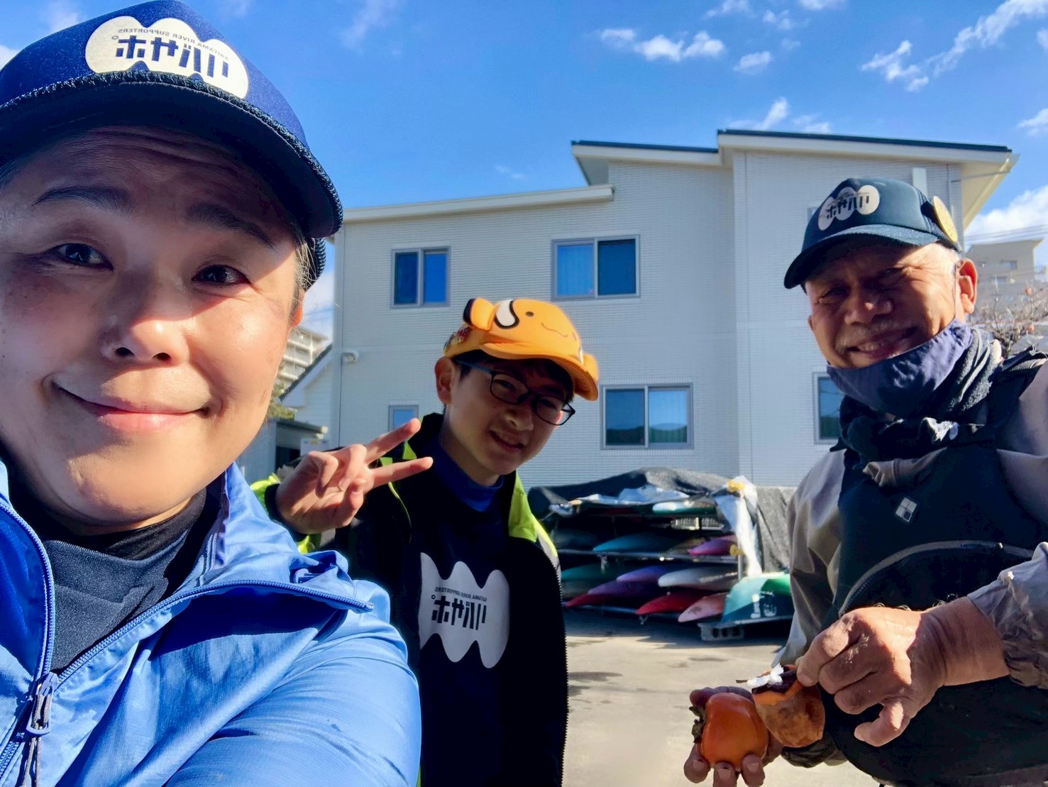 ゴミ拾いに熱中していると、1月の大会出場艇の確認を兼ねて活動していた、ソウスケがやや離れてしまう場面がありました。もしもの時の安全を考え、合流し3人でお互いの位置確認をしようと共有、安全意識を高め合いました。