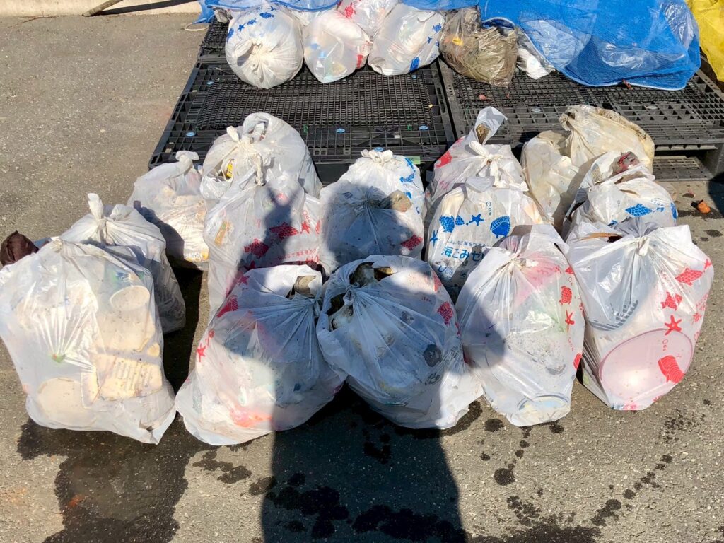 早朝の出発時は気温3℃程と厳しい寒さでしたが、活動終了時には約9℃まで気温が上がり、比較的穏やかな天候のもと活動を終えることができました。上潮でゴミが登って来たのか、浮遊ゴミがたくさんありました。