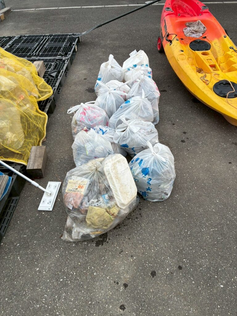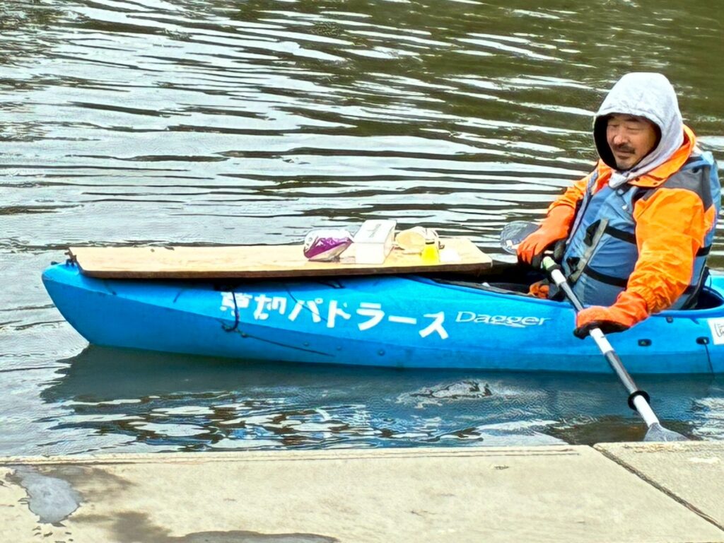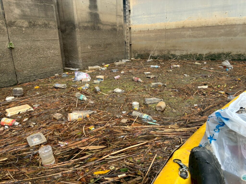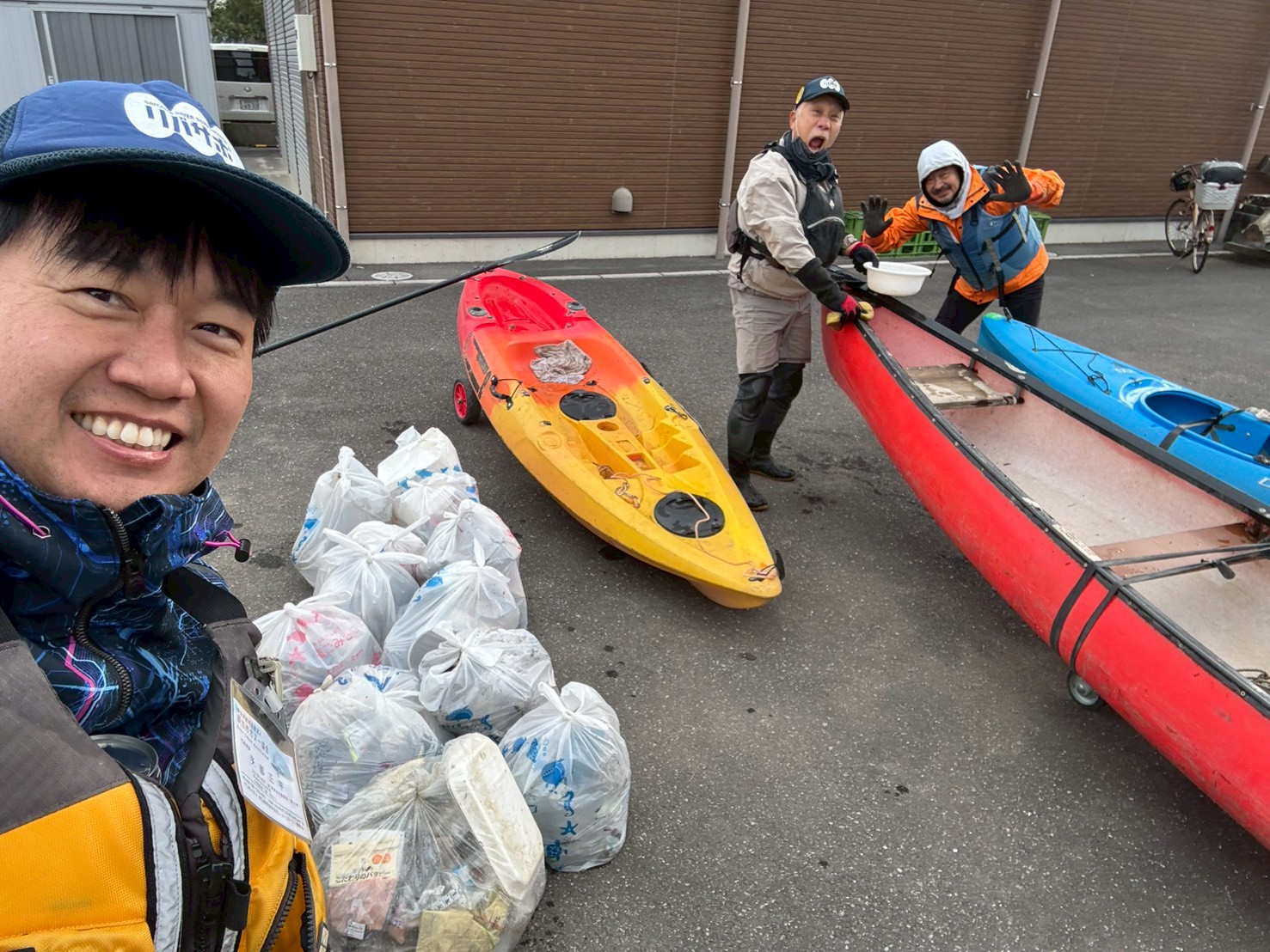3名で目的地の蒲生を目指すも缶やペットボトルなど浮遊ゴミが多く進みが悪く加えて、とても寒い為に外環の水門で休憩なしで引き返しました。