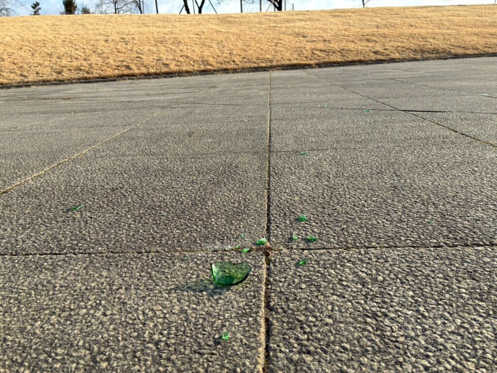 ラグーンに割れたビンが散乱しており危ないので朝一で清掃。花火もしていたような焦げ跡もありました。
