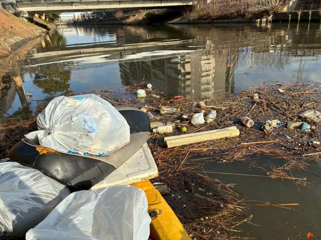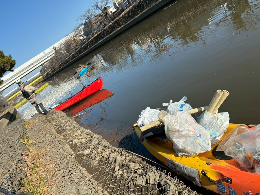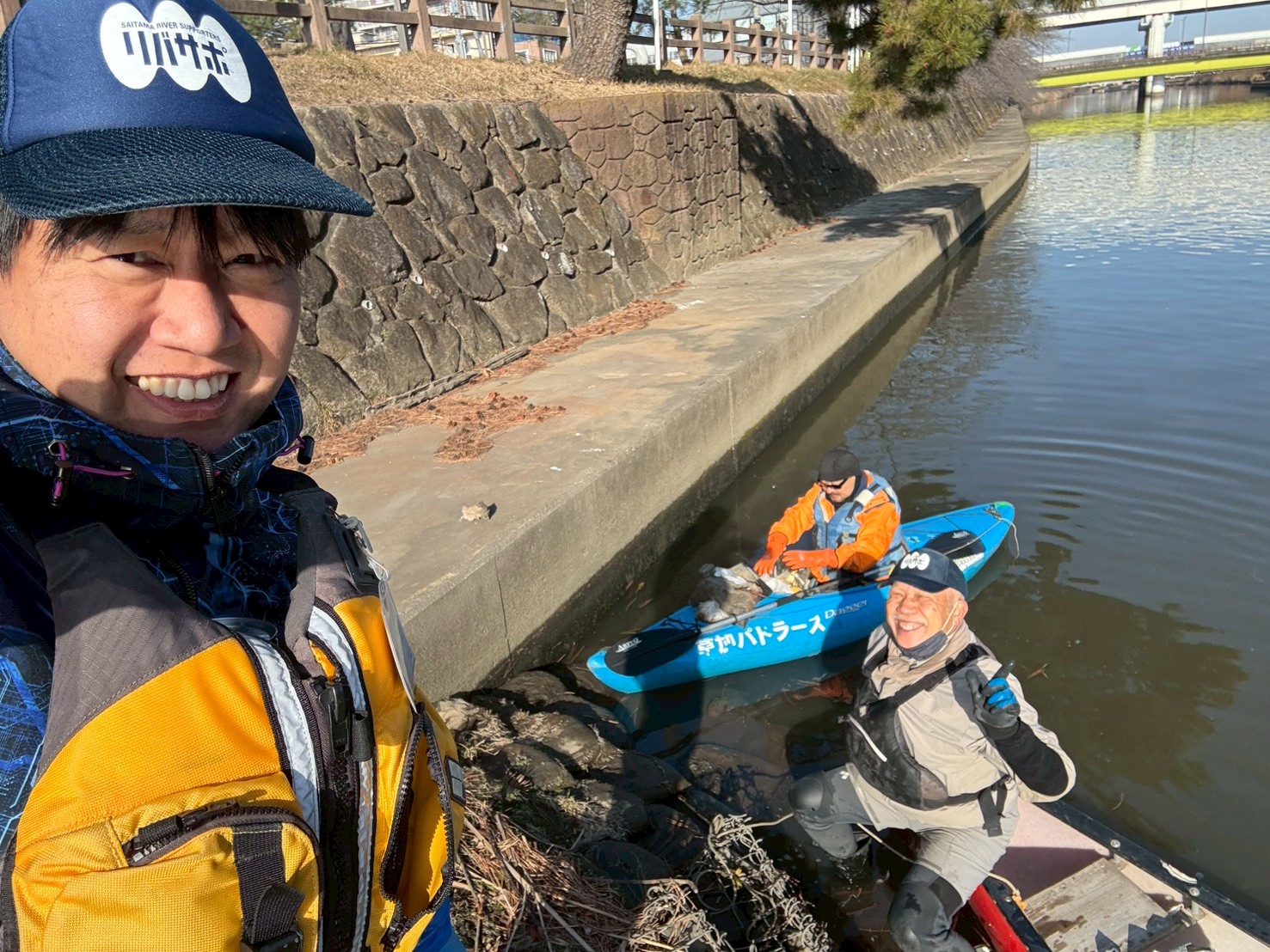 スタート時3名の少数精鋭で蒲生を目指すも、流れてくる缶、ペットボトルなどゴミが多く前に進まず。