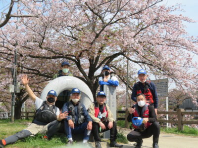 No.588p2 桜が舞い散る中での活動/蒲生船着き場/12名で6袋/花見のゴミ多数
